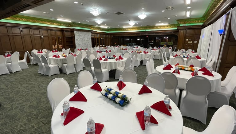 Spacious, elegant hall perfect for weddings, parties, and gatherings.